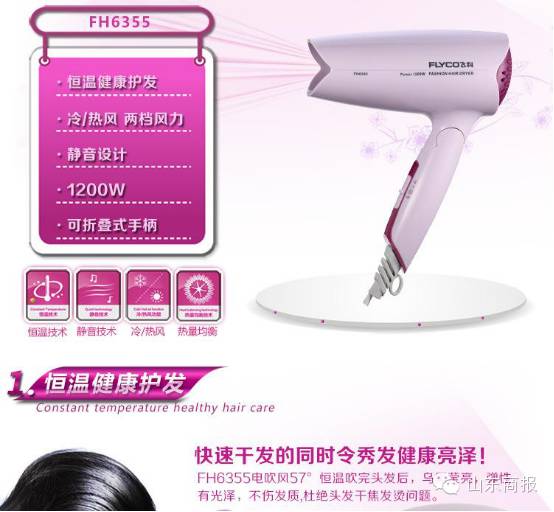 1、飞科FH6355 电吹风 (折叠吹风机,轻巧便携、恒温护发 )