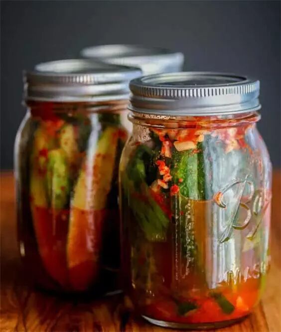 4、把所有食材放到玻璃瓶中,盖紧盖子,腌制24个小时后冷藏。