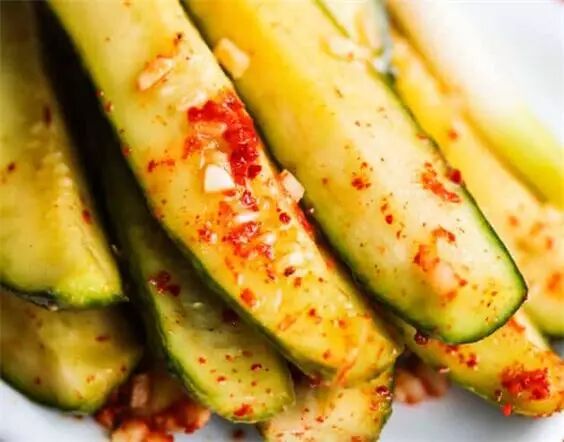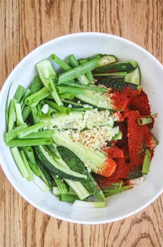 食 材 黄瓜、大葱、姜、蒜、辣椒粉、盐、米醋、酱油