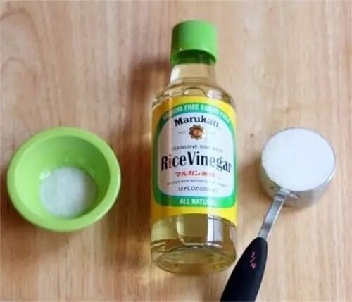 2、将白醋和水按照3:1的比例调匀,加适量白糖和盐,搅拌至糖溶解。