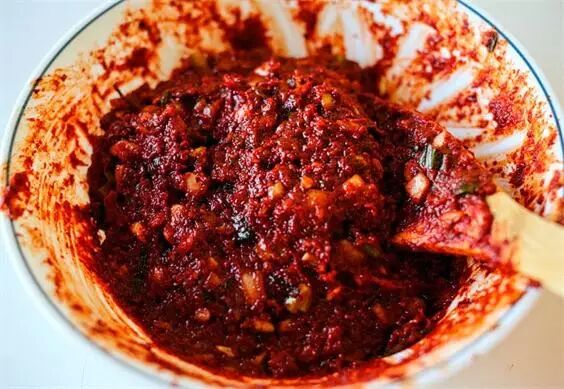 食 材 大白菜、姜、大葱、蒜汁、葱汁、盐、红辣椒粉、白糖