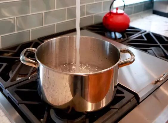 2、洗净一口锅,按1:1的比例添加水和醋,加盐烧开。