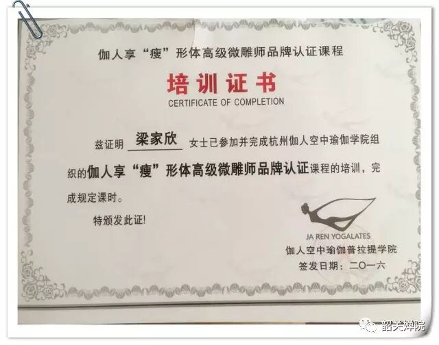 简介:2012年加入亚洲协会学习哈他瑜伽,并获得高级瑜伽教练证书。接着进行热瑜伽以及流瑜伽的学习。2015学习正位哈他200小时以及轮瑜伽,空中瑜伽培训课程;2016年初参加:伽人空中瑜伽普拉提极塑瘦身系列、伽人空中瑜伽普拉提肩颈、脊柱康复系列、伽人享“瘦”塑型专利课程私教、小团体课等课程,皆获得证书。习练瑜伽多年,不断学习,自我提升,累计丰富的授课经验,深受伽人的喜爱。