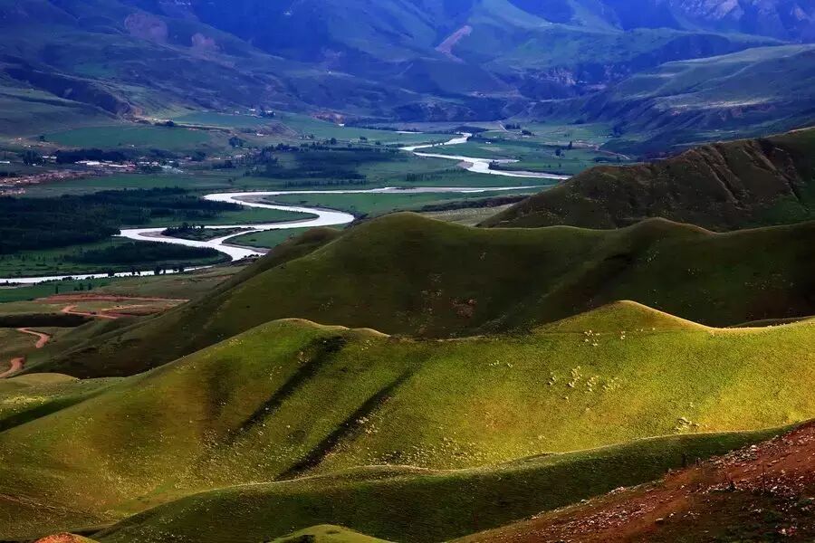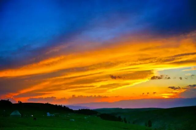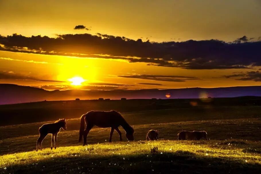 日出日落的时候更是美得让人移不开眼!特别是在将暮未暮之时,坐在小河边看着红日渐渐落下地平线,群山也被斜阳染上淡淡的红......