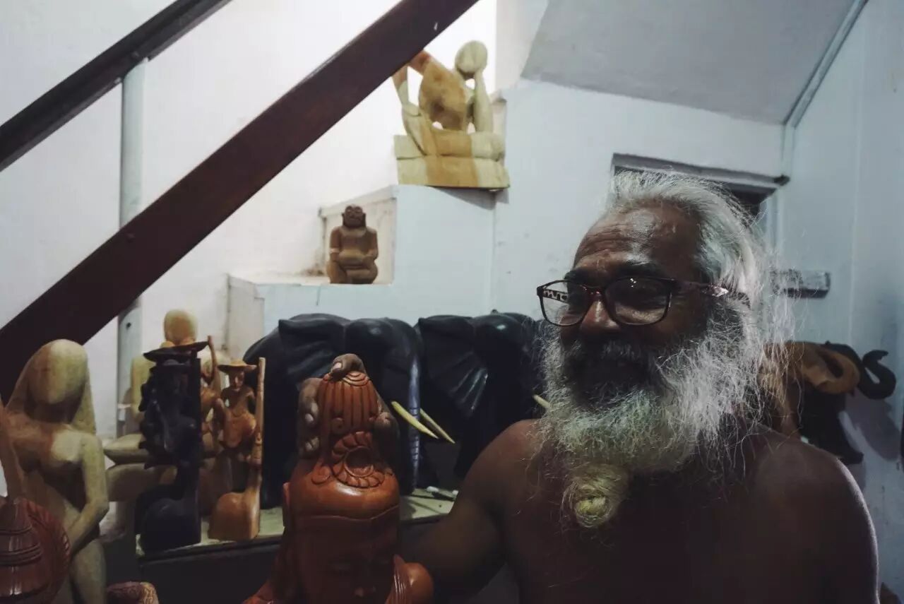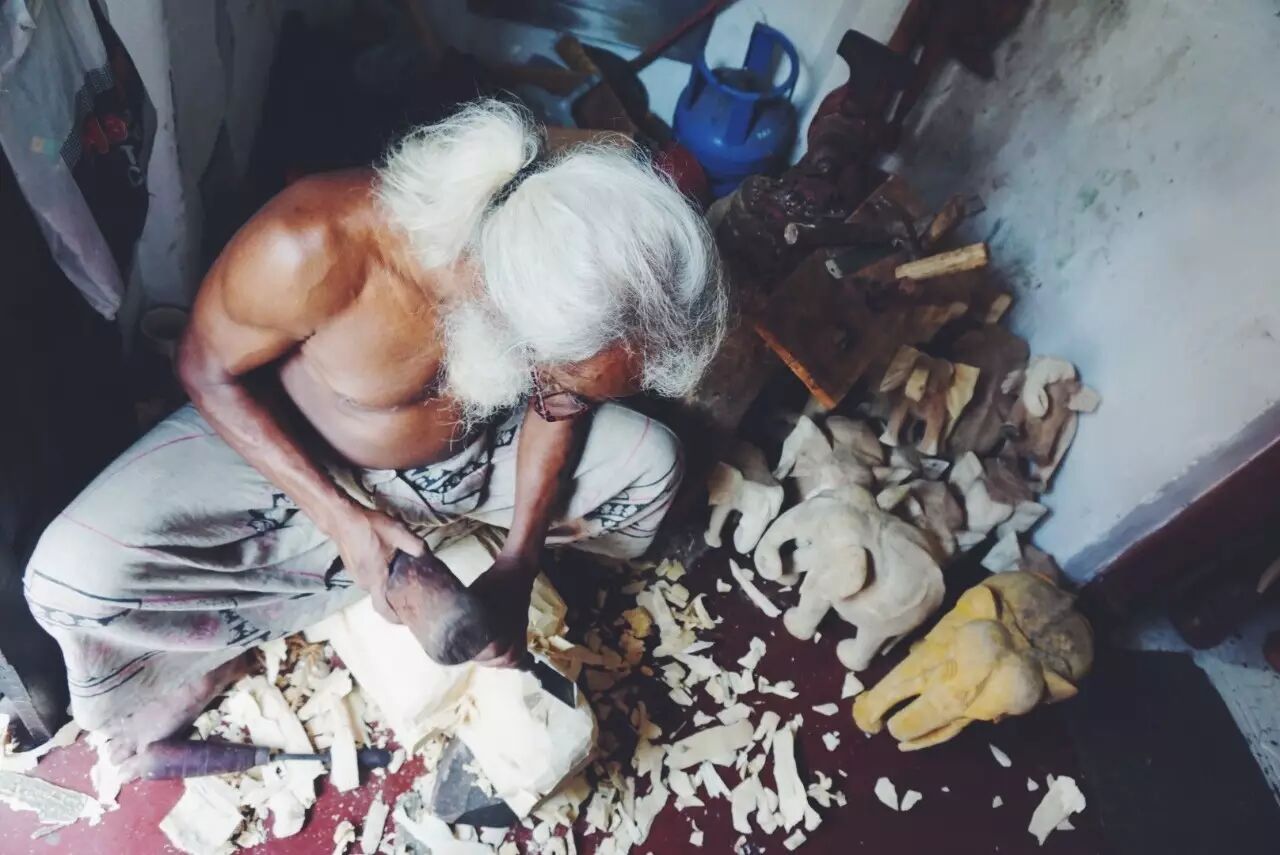 偶遇一个老手工艺人,满屋子的雕塑均出自他一人之手。