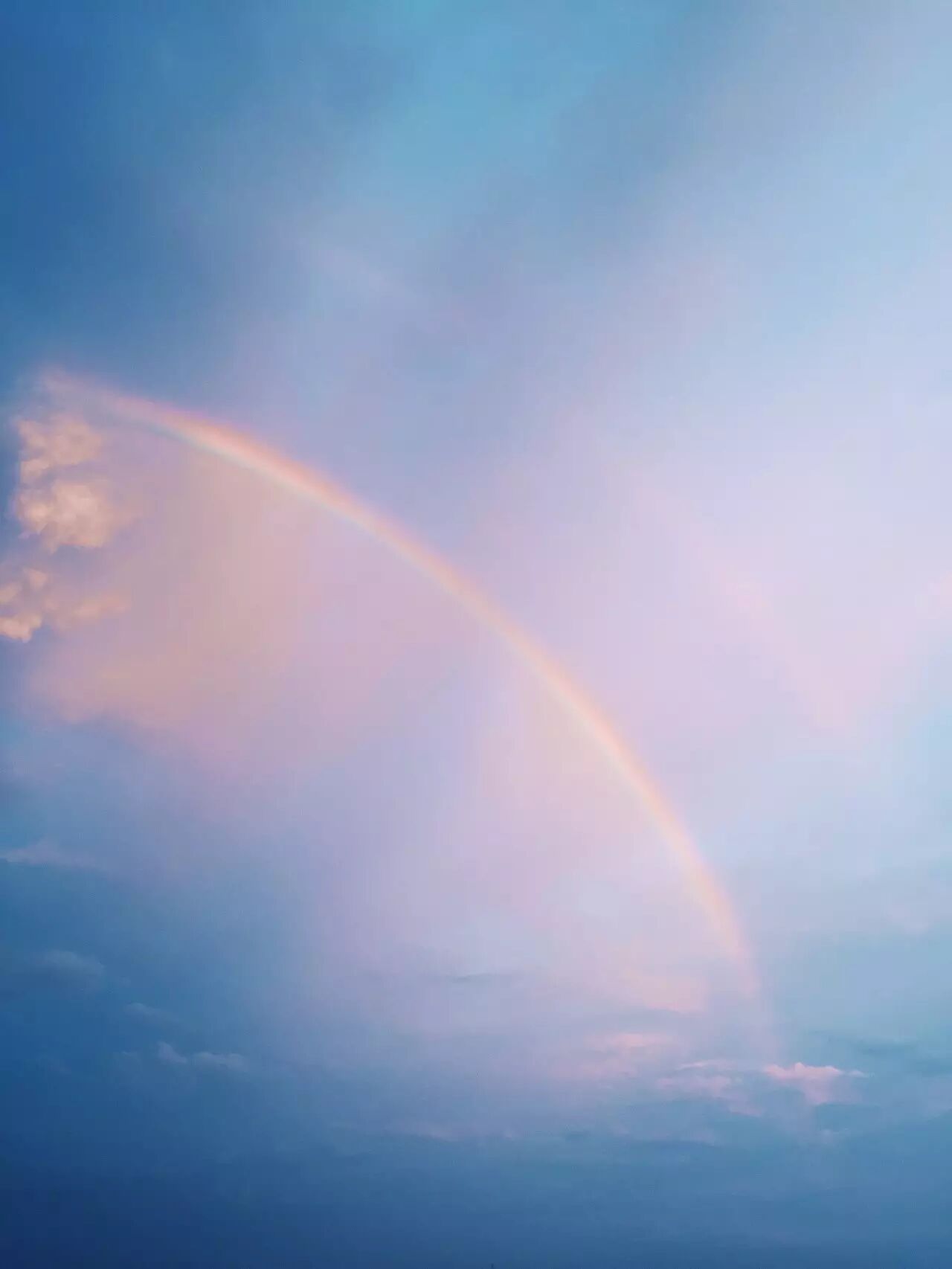 这时天上飘起了小雨,软软的雨儿飘着,太阳不害羞的快速落着,忽然在天空的另一边出现了彩虹,一边是落日,另一边是彩虹,中间连接着是无尽的蓝天和大海。