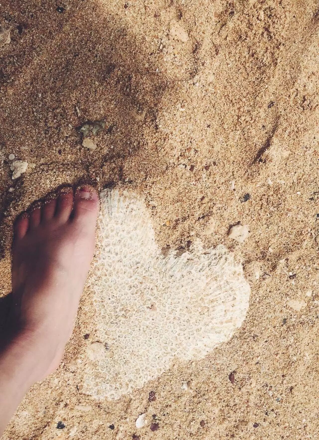 就是在美蕊莎的海边,我偶遇了心形珊瑚石,比我两只脚都大。