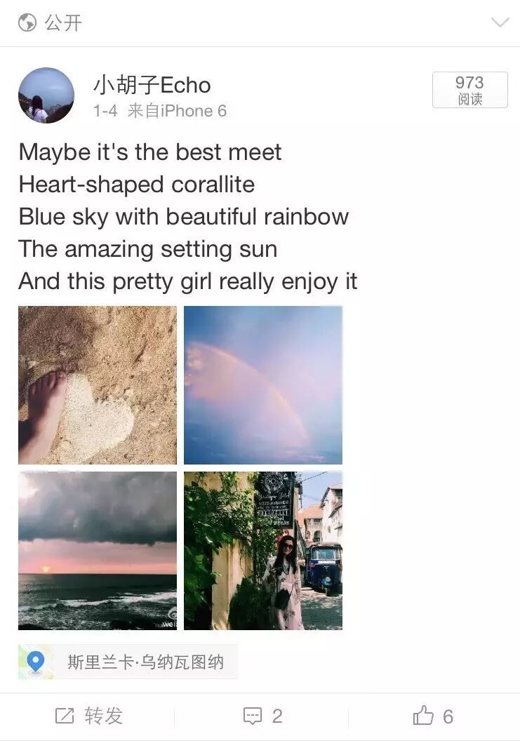 在斯里兰卡当地人对中国妹子搭讪的可能性真是不要太高,随便走走都会有人对你说You are beautiful, I love you之类的,别搭理,他们说 hello 也要看情况回应。