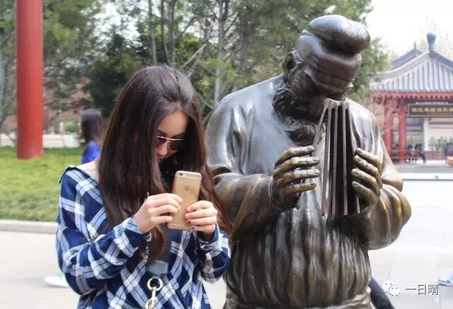 喜欢去模仿路边的雕塑 你看低头的幅度都一模一样呢